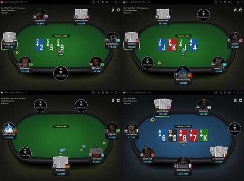 В ClubGG так же есть ПК клиент с горизонтальными столами и возможностью открывать сразу 4 стола, что делает игру очень комфортной.